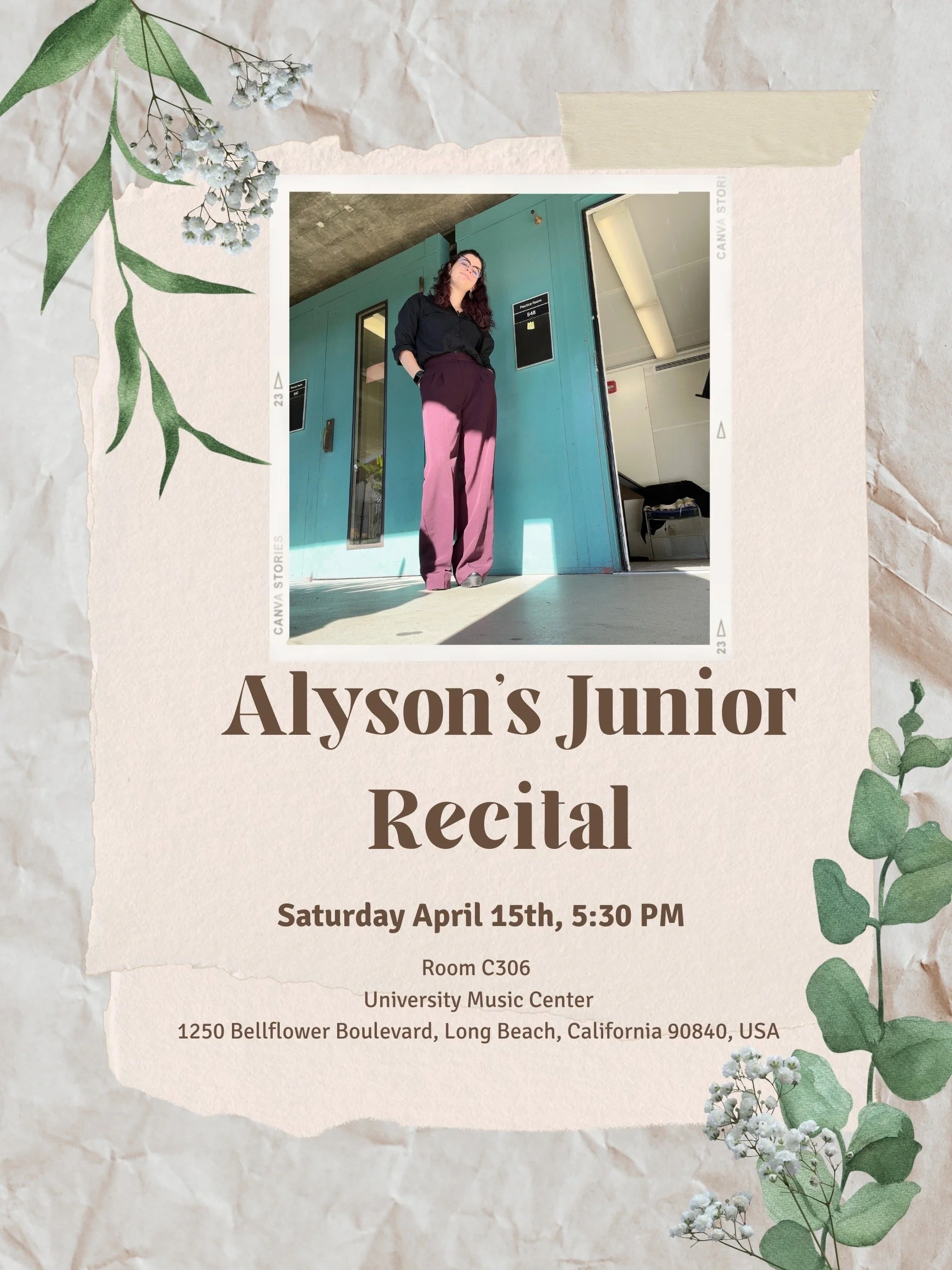 Spring 2023Alyson Rochlin’s Junior Recital Slide 1 Slide 1 (current slide) Slide 2 Slide 2 (current slide) Slide 3 Slide 3 (current slide) Slide 4 Slide 4 (current slide) Slide 5 Slide 5 (current slide) Slide 6 Slide 6 (current slide) Slide 7 Slide 7 (current slide) Slide 8 Slide 8 (current slide) Slide 9 Slide 9 (current slide) Slide 10 Slide 10 (current slide) Slide 11 Slide 11 (current slide) Program